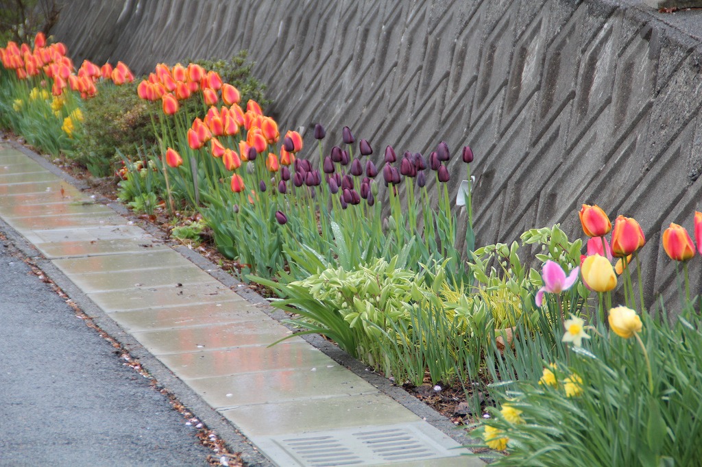 真ん中の黒っぽい色は「クイン・オブ・ナイト」という品種